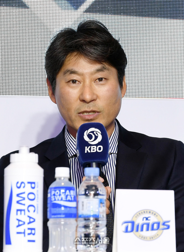 NC 다이노스 강인권 감독이 30일 서울 용산구 그랜드하얏트서울호텔에서 진행된 2023 KBO 미디어데이 행사에서 출사표를 밝히고 있다. 2023. 3. 30.