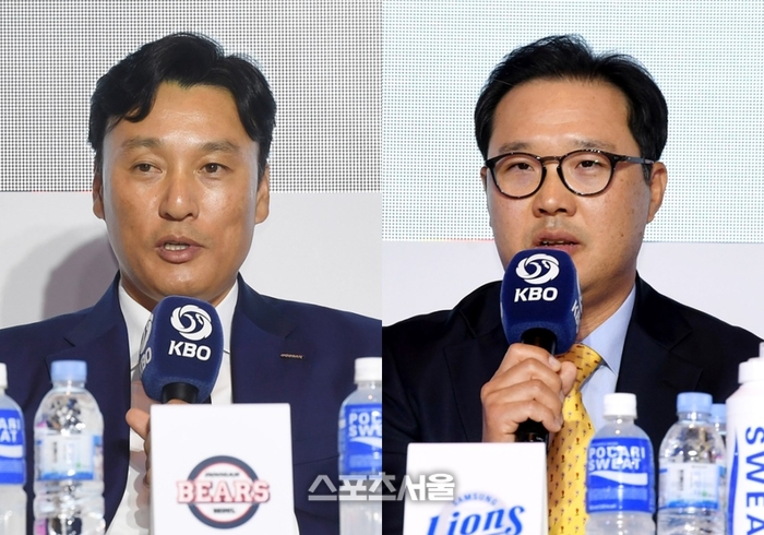 [스포츠서울 | 그랜드하얏트호텔=김동영기자] 초보 감독이다. 동갑내기 친구라는 점도 있다. 서로 치켜세웠다. 그러나 승부는 또 별개다. “이기겠다”고 했다. 주인공은 삼성 박진만(47) 감독과 두산 이승엽(47) 감독이다.