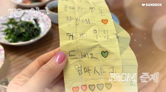 아들의 깜짝 생일선물 개봉식도 이어졌다. 서하얀은 아들이 준비한 컵과 직접 쓴 편지도 확인했다. 편지에는 ‘엄마 생신 축하해요. 준재가 번 돈으로 산 건데 커피 맛있게 드세요. 엄마 사랑해요’라는 귀여운 글이 적혀있었다.