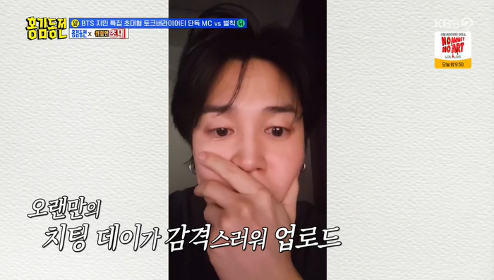 특별 MC를 맡은 김숙은 지민에게 다양한 질문을 건넸다. 그중 최근 화제가 된 눈물 셀카에 대해 지민은 “멤버들이랑 장난치다가, 다이어트를 하다가 오랜만에 밥을 먹어서 (눈물 흘린 사진을) 올렸다. 기사가 날 줄 몰랐다”며 “인공눈물이다”고 설명했다.
