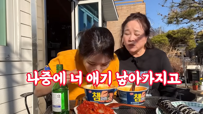 김밥과 라면을 먹던 전성애는 미자에게 “이렇게 김밥 싸갖고 야외에서 먹으니 얼마나 좋냐? 나중에 너 아기 낳아가지고 가느다라게 아기 먹게 예쁘게 김밥 싸갖고 나들이 다니고 생각만 해도 나는 너무 즐겁겠다. 얼른 아기 낳아 가지고 같이 내가 김밥 예쁘게 말아 줄게. 아기들 좋아하는 거 딱 넣어가지고”라고 말하며 2세를 기대했다.