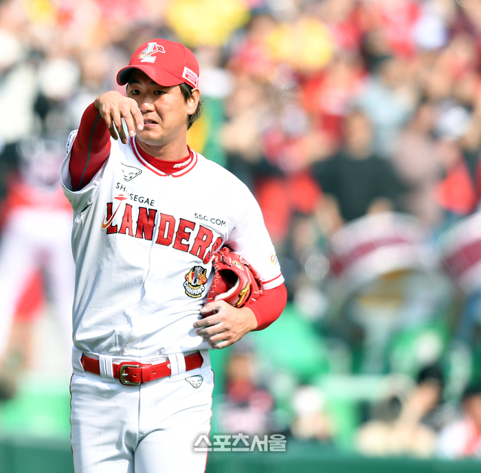 SSG 선발투수 김광현이 1일 인천SSG랜더스필드에서 열린 2023프로야구 SSG와 KIA의 경기 4회초 손가락 이상으로 트레이너를 손짓으로 부르고 있다. 2023.04.01.