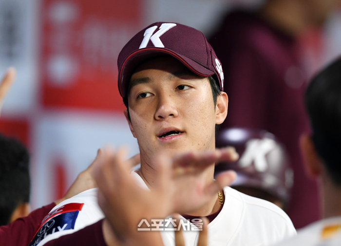 키움 히어로즈 안우진이 1일 고척스카이돔에서 열린 2023 KBO리그 한화 이글스와의 개막전 6회초 1사 2루 상황에서 한화 최재훈을 삼진 아웃으로 잡아내며 이닝을 마친 뒤 동료들과 하이파이브를 하고 있다. 안우진은 6이닝 동안 역대 개인 최다이자 KBO 역대 개막전 선발투수 최다인 12개의 삼진 아웃을 잡아내며 무실점 호투를 펼쳤다. 2023. 4. 1.