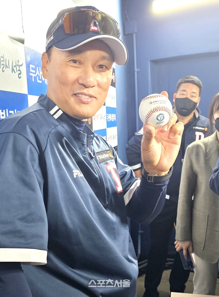 이런 이 감독에게 새 외국인 타자 호세 로하스가 평생 간직할 선물 하나를 선사했다. 2일 잠실구장에서 열린 2023 KBO리그 롯데와 정규시즌 홈경기를 앞두고 만난 이 감독은 “로하스가 매니저를 통해 끝내기 홈런공을 되돌려주더라. 자신은 첫안타 공을 챙겼으니, 감독 데뷔 승을 기념하는 공은 당연히 감독이 간직해야 한다는 메시지가 따라왔다. 케이스에 담은 상태로 받았는데, 너무 좋았다”며 웃었다.