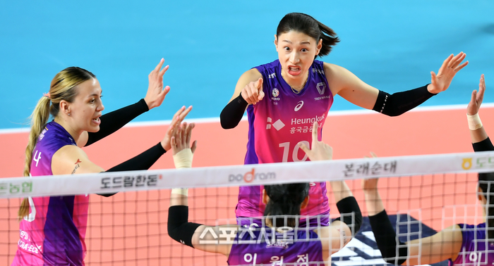 흥국생명 김연경이 2일 김천실내체육관에서 열린 2022-2023 V리그 여자부 챔피언결정전 3차전 흥국생명과 한국도로공사의 경기에서 선수들을 독려하고 있다. 2023.04.02.