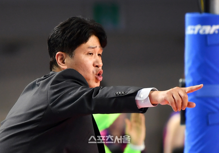 도로공사 김종민 감독이 2일 김천실내체육관에서 열린 2022-2023 V리그 여자부 챔피언결정전 3차전 흥국생명과 한국도로공사의 경기에서 선수들을 독려하고 있다. 2023.04.02.
