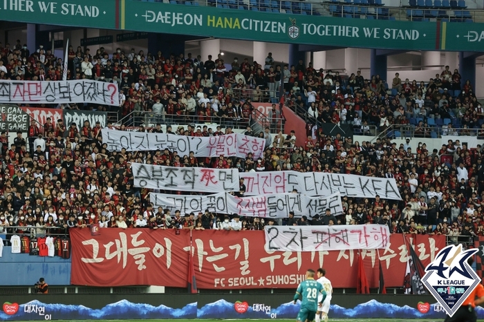1일 대전월드컵경기장에서 열린 대전하나시티즌과 FC서울의 경기에서 대전 서포터는 ‘책임자 사퇴, 축협 쇄신 촉구’, ‘가족 같은 축구협회’, ‘대전팬 두 번 죽인 축협도 승부조작 한통속’ 등의 현수막으로 협회를 질책했다.