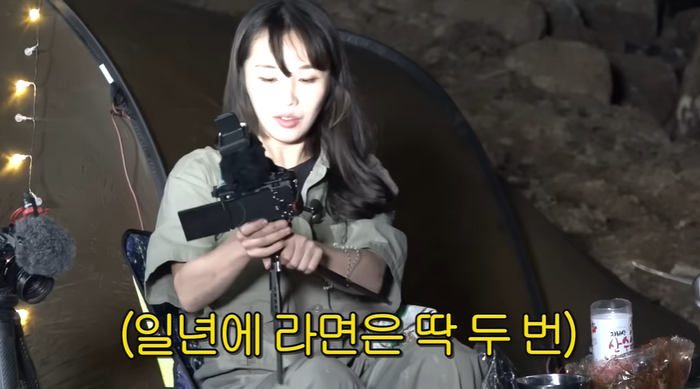 지난 1일 한혜진 유튜브에는 ‘살벌한 ‘야생캠핑’ 한혜진의 벚굴구이 먹방 with 리랑온에어 (직화대파라면, 산수유막걸리, 한우투쁠)’이라는 제목의 영상이 게재됐다.