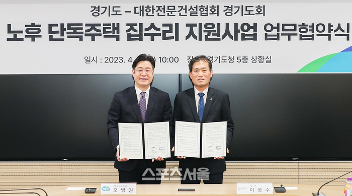 오 행정1부지사는 “이번 협약은 집수리를 희망하는 주민들에게 건실한 집수리업체 정보를 쉽고 편리하게 제공하는 통로가 될 것”이라며 “도와 대한전문건설협회 경기도회간 유기적 협력관계가 구축돼 노후 단독주택 집수리 지원사업이 활성화 되기를 기대한다”고 말했다.