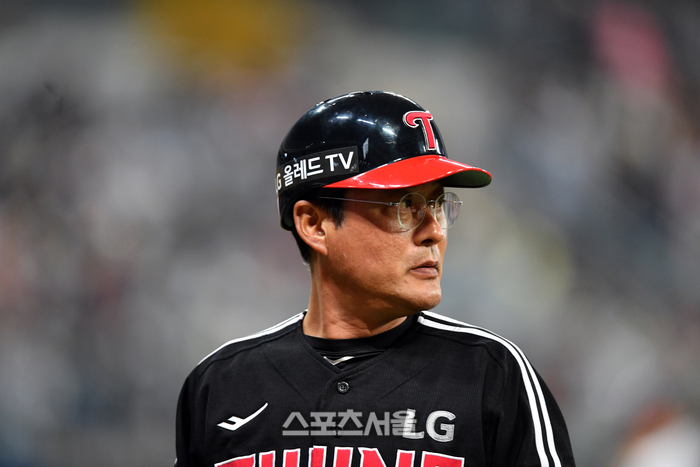 LG 이종범 1루주루 코치가 5일 고척스카이돔에 열린 2023 프로야구 키움히어로즈와 LG트윈스의 경기에서 외야를 쳐다보고 있다. 이종범의 아들인 이정후는 4일에 이어 오늘도 결장했다.2023.04.05.