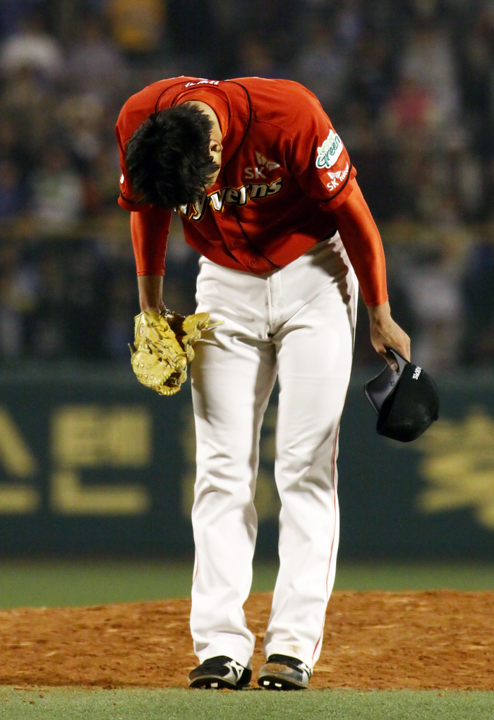 지난 2010년 한국시리즈 우승을 확정한 후 마운드를 향해 달려오는 포수 박경완을 향해 모자를 벗고 90도로 인사했다. 선배에 대한 고마움을 담았다. 그 장면 만으로도 화제가 됐다.
