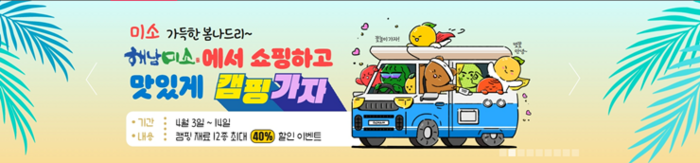 [스포츠서울|해남= 조광태 기자] 전남 해남군은 봄철 캠핑 시즌을 맞아 직영 온라인 쇼핑몰 해남미소에서 오는 14일까지‘미소가득 봄나드리 캠핑대전’을 실시한다.