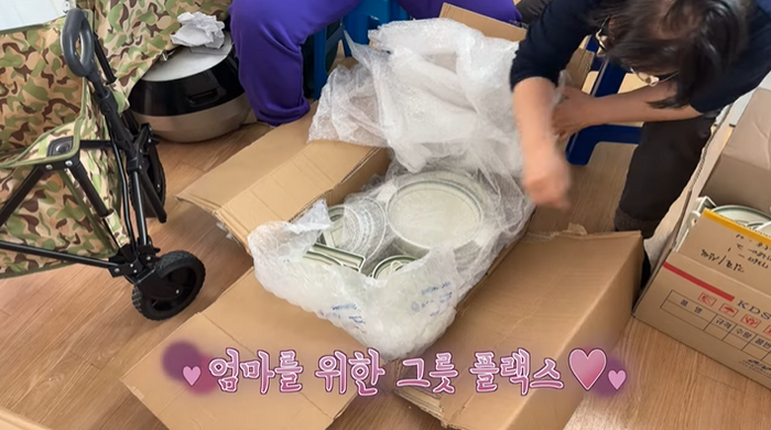 먼저 이국주는 엄마를 위해 준비한 그릇 3박스부터 정리했다. 남다른 그릇 플렉스에 이국주의 엄마도 소녀 같은 모습으로 좋아했다.