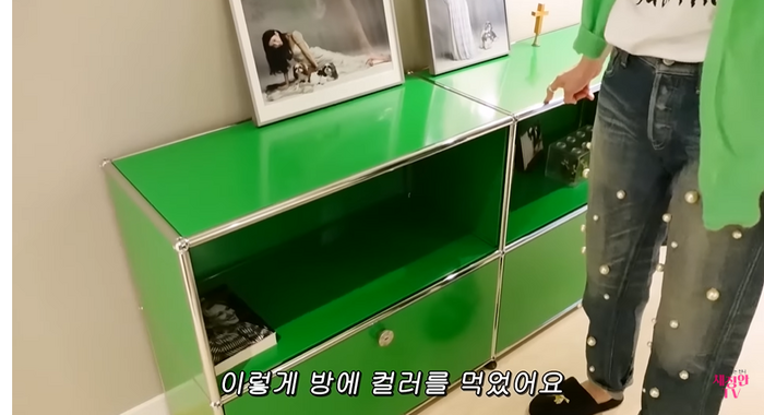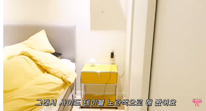 또, 채정안은 침실에 놓은 녹색 스토리지와 침대 옆에 노란색 사이드 테이블도 소개했다. 두 제품은 600만 원이 넘는 고가의 제품으로 눈길을 끌었다.