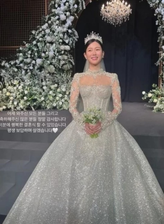 그러면서 “멀리 LA에서 직접 만든 티아라 선물해준 준킴오빠, 아름다운 부케 만들어서 선물해준 유미언니 정말 감사하다. 평생 간직하겠다”라고 덧붙였다.