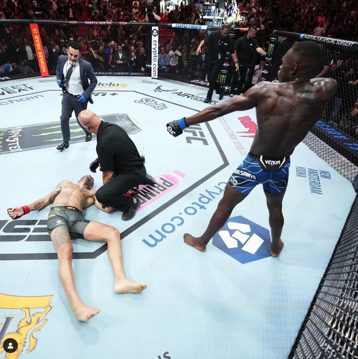 전 UFC 미들급 챔피언 이스라엘 아데산야(33·나이지리아/뉴질랜드)가 UFC 미들급 챔피언 알렉스 페레이라(35·브라질)의 벽을 드디어 넘었다. 알렉스 페레이라는 자신의 1차 방어전에서 패하며 챔피언 벨트를 빼앗겼다.