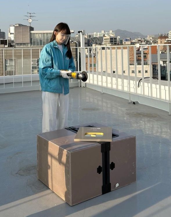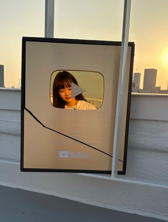 사진 속 강민경은 옥상에서 전기톱을 동원해 유튜브 ‘골드 버튼’을 깔끔하게 반으로 갈랐다. 채널 일등 공신인 이해리와 나누고자 한 것. 앞서 강민경은 자신의 유튜브 채널 ‘걍밍경’을 통해 구독자를 끌어모아 100만 명 달성 기념으로 ‘골드 버튼’을 품에 안았다.