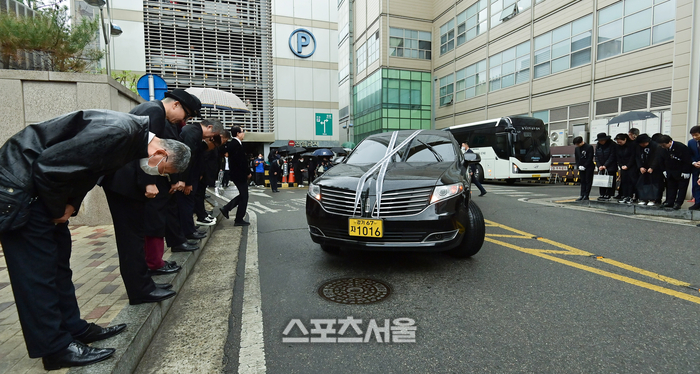차량이 장례식장을 떠난 뒤에도 수많은 동료들은 한참 동안 멍하니 차량이 떠난 자리를 바라보며 쉽사리 발걸음을 옮기지 못했다. 운구 차량이 떠나자 거짓말처럼 비도 그쳤다.