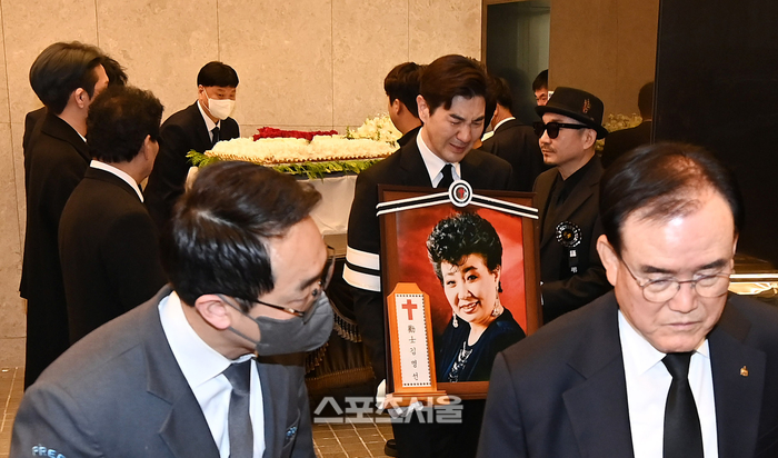 이어 후배가수 박상민이 추도사를 읽어나갔다. 박상민은 “몇 년 전에 미국에서 공연할 때 아무 조건 없이 게스트로도 서주셨는데 며칠 전에 슬픈 소식을 듣고 도저히 믿기지 않았다. 여든이 가까운 연세에도 최근까지 활동하시는 모습을 봤기 때문에 현실감이 들지 않았다”며 말문을 열었다.