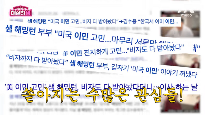 정유미는 “난 내가 가는 줄 알았어”라며 난리가 났던 당시를 떠올렸다. 샘 해밍턴은 “아니... 무슨 말도 안 되는”이라며 “인종차별 때문에 (이민 간다) 이런 이야기를 하고 그래”라고 분노했다.