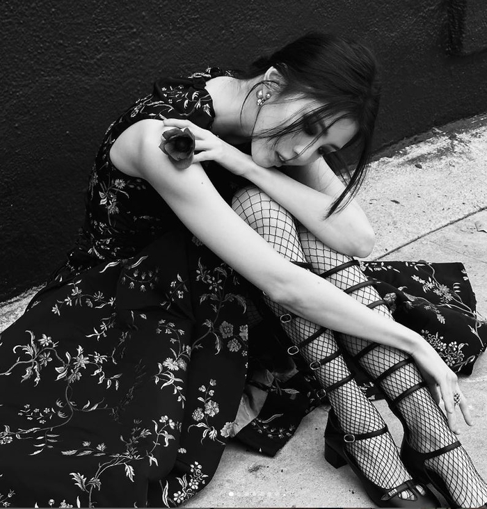 한소희는 진한 스모키 메이크업에 블랙 꽃무늬 드레스를 입고 다양한 포즈를 취하고 있다. 벽에 기대 있는가 하면, 길바닥에 쪼그려 앉거나 눕는 등 열정적으로 촬영에 임한 모습이다.