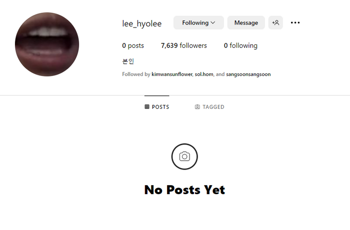 프로필에는 입을 확대한 사진을 올렸고 ‘본인’이라는 말로 자신을 소개했다. 14일 오전 6시 기준 팔로워는 7600명을 넘어섰고 남편 이상순, 가수 엄정화, 김완선 등이 팔로우를 했다.