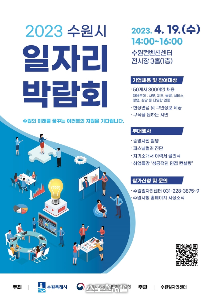 〔스포츠서울│수원=좌승훈기자〕 경기 수원시는 오는 19일 오후 2시부터 4시까지 수원컨벤션센터 전시장 3홀에서 ‘일자리박람회’를 갖는다.