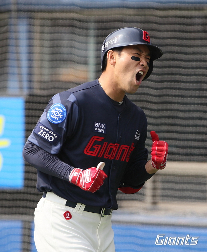 안치홍의 좌중간 2루타 때 3루까지 들어갔고, 한동희의 중전 적시타 때 홈까지 밟았다. 6-8로 바짝 추격하는 순간이었다. 전준우의 투혼이다. 9회초 타석에서는 박승욱이 대타로 나섰다.