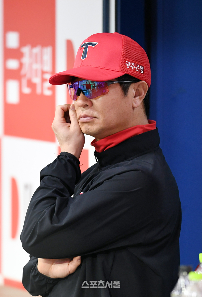 KIA 타이거즈 김종국 감독이 16일 고척스카이돔에서 열린 2023 KBO리그 키움 히어로즈와 경기에서 선수들의 플레이를 지켜보고 있다. 2023. 4. 16.