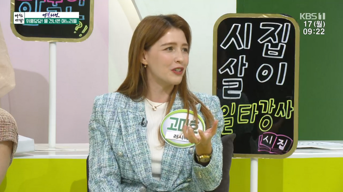 17일 방송된 KBS1 ‘아침마당’의 ‘명불허전’ 코너에는 물 건너온 며느리들을 주제로 이탈리아 국적의 크리스티나, 러시아 국적의 고미호, 가나 국적의 글라디스, 독일 국적의 사만다, 튀르키예 국적의 니다, 미얀마 국적의 찬찬이 출연했다.