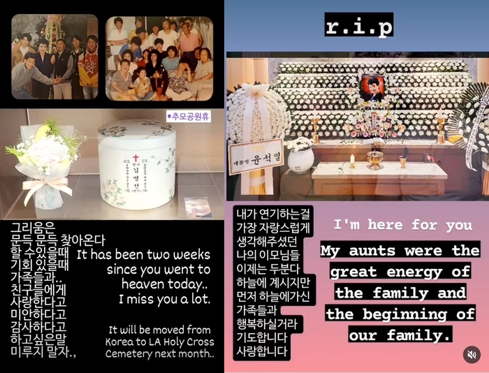 함께 첨부된 사진은 한상진의 이모인 현미와 찍은 사진과 납골함의 모습이 담긴 것으로, 최근 세상을 떠난 그를 추모한 것으로 보인다.
