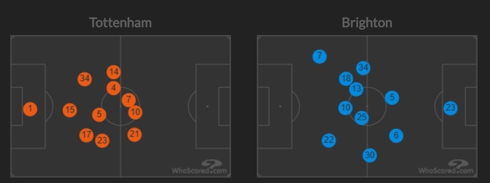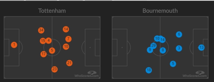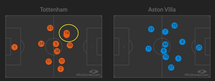 1월 애스턴 빌라전 히트맵과 비교됐다. 당시 손흥민과 페리시치는 왼쪽 측면에서 아예 동선이 겹친 것으로 나온다.