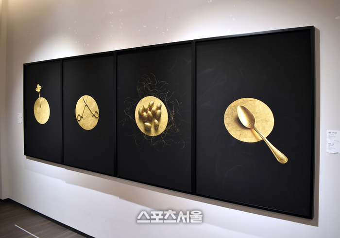 ‘금’시리즈에서 사물에 금박을 입혀 누구나 좋아하는 황금을 만들어냈다. 그러나 단순히 귀하고 비싼 물질적 황금이 아니라, 황금 역시 소멸한다는, 존재의 유한함을 에둘렀다.