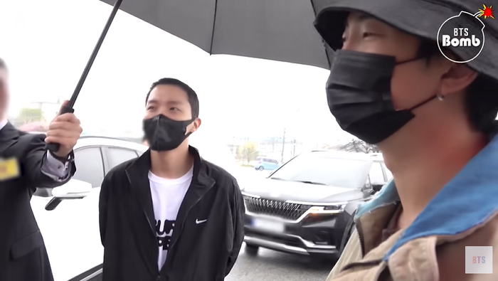 정국은 “진 형 갈 때는 좀 그랬는데 홉이형 갈 때는 마음이 뭉클하네. 장난이다”라며 형 제이홉의 긴장을 풀어주기 위해 농담도 던졌다.