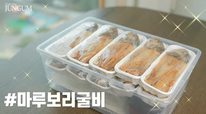 첫 번째는 보리굴비. 그는 “봄 되면 꽃이 펴서 너무 좋은데 여름으로 들어가는 길목 사이에 입맛이 뚝 떨어진다. 변함없이 그런다. 입맛이 정말 바닥일 때는 100% 성공률(을 가지고 있다)”며 “‘빨리 체력을 올려야겠다’ 이럴 때 주로 찾는 음식이다. 엄정화 후배한테 선물을 받았다”고 한가득 담긴 보리굴비를 소개했다.