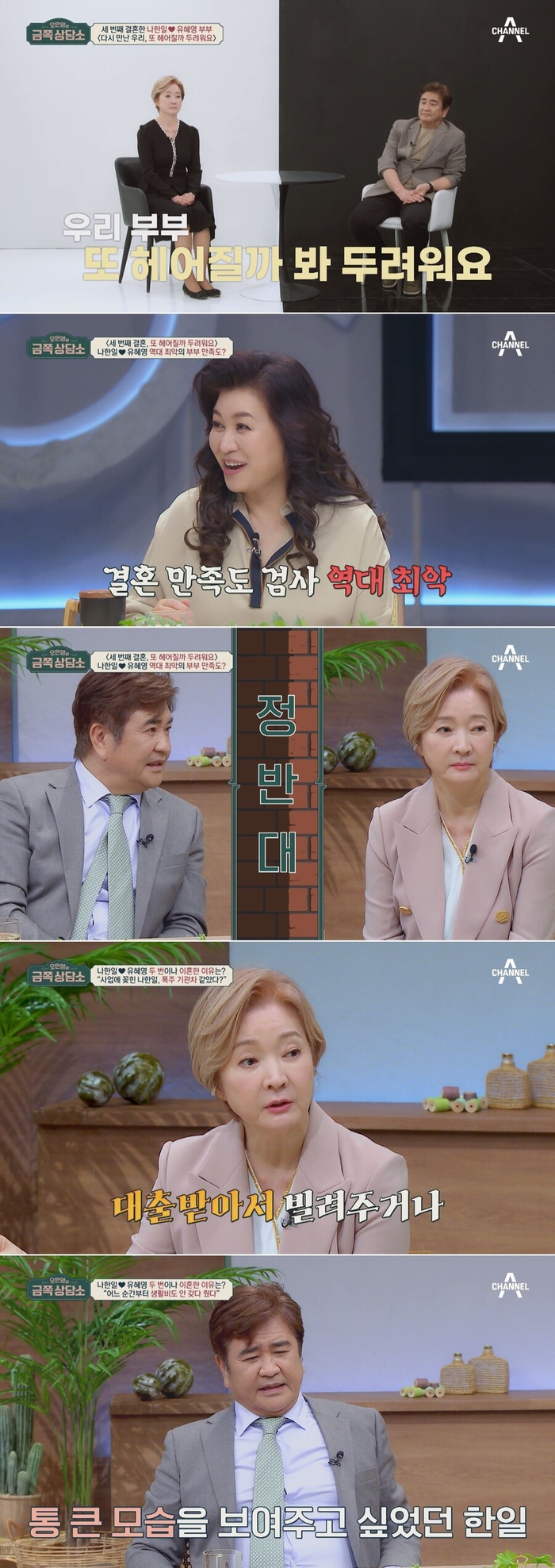 이에 오은영 박사는 “나한일, 유혜영 부부가 사전에 실시한 결혼 만족도 검사의 14가지 항목 중 하나도 빠짐없이 갈등을 보인다”라며 ‘금쪽 상담소’ 부부 출연자 중 역대 최악이라는 검사 결과를 전한다. 부부가 가진 가장 큰 갈등 원인은 경제적 갈등과 정서적 소통 문제였다.