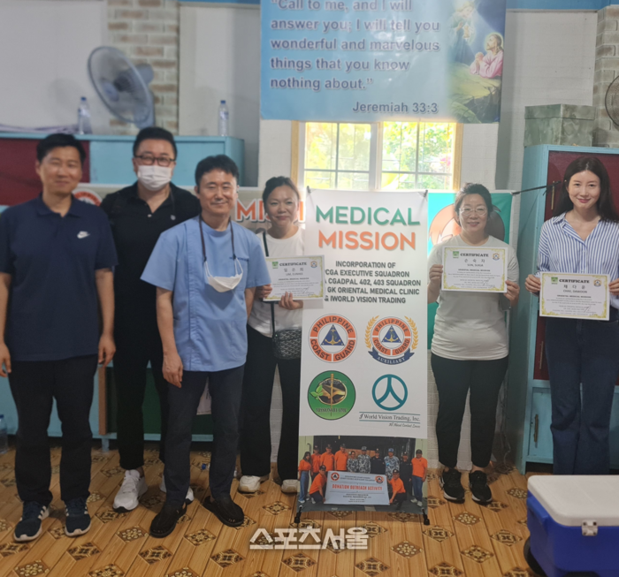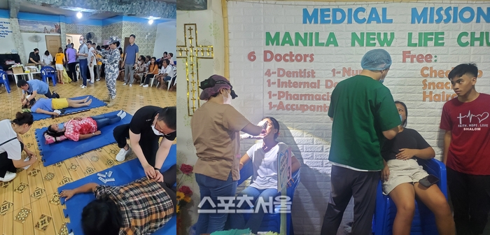 [스포츠서울 | 필리핀 주재기자 방영수] 지난 22일필리핀 라구나 88 온천 인근에 위치한 주민들을 대상으로 새 생명 교회(담임 목사 윤천석) 의료 선교팀 봉사단 30명과 김원갑 원장 소속 단체인 의료 써비스 미션팀 6명 그리고 필리핀 해경(임홍우 준장) 의료 봉사단 4명이 함께 지역주민 300여명을 대상으로 한방, 치과, 내과, 의약품등 의료 봉사활동을 실시했다.
