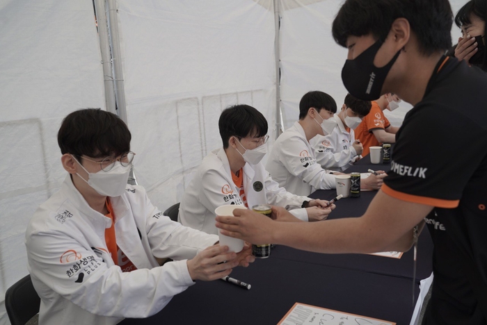이날 현장에는 한화생명e스포츠 선수와 감독, 코칭스태프 등 1군 선수단 9명 전원이 참석해 경기를 관람하고 다양한 이벤트에 참여하는 등 팬들과 소통을 진행했다. 경기 시작 2시간 전부터 LCK 주전 선수 5명은 팬 사인회를 진행해 팬들과 만났다.