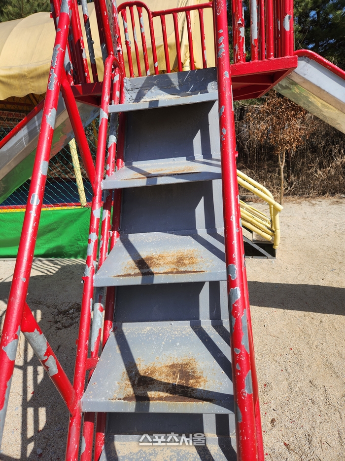 구체적으로 여주시 A 캠핑장의 놀이시설은 페인트가 벗겨지거나 녹슨 부분이 있었고, 용인시 B 캠핑장 미끄럼틀은 바닥이 깨져 있고 그넷줄이 일부 훼손돼 있었다. 연천군 C 캠핑장에 설치된 시소는 손잡이가 빠져 있고 놀이대의 볼트가 돌출돼 있으며 플라스틱 안전판은 깨져 있었다.