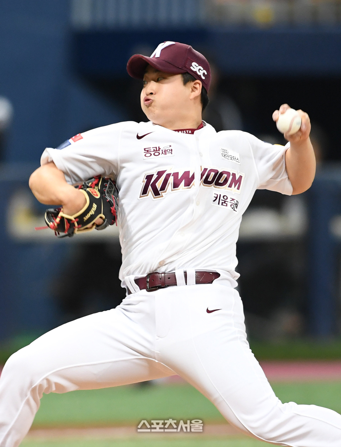 키움 히어로즈 김재웅이 25일 고척스카이돔에서 열린 2023 KBO리그 KT 위즈와 경기 9회초 등판해 힘차게 공을 던지고 있다. 김재웅은 1이닝을 무실점으로 막아내며 시즌 2세이브를 기록했다. 2023. 4. 25.