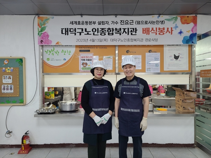 ‘효 가수’로도 유명한 진요근은 세계효운동본부를 설립해 다양한 봉사활동을 하고 있다. 봉사활동의 든든한 동반자는 아내 남여정씨다.