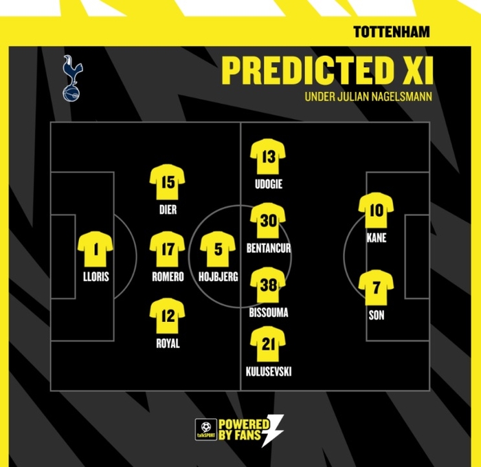 26일(한국시간) 영국 매체 ‘토크스포츠’는 율리안 나겔스만(36.독일) 감독이 토트넘 사령탑에 부임할 경우 예상 선발라인업을 언급했다.