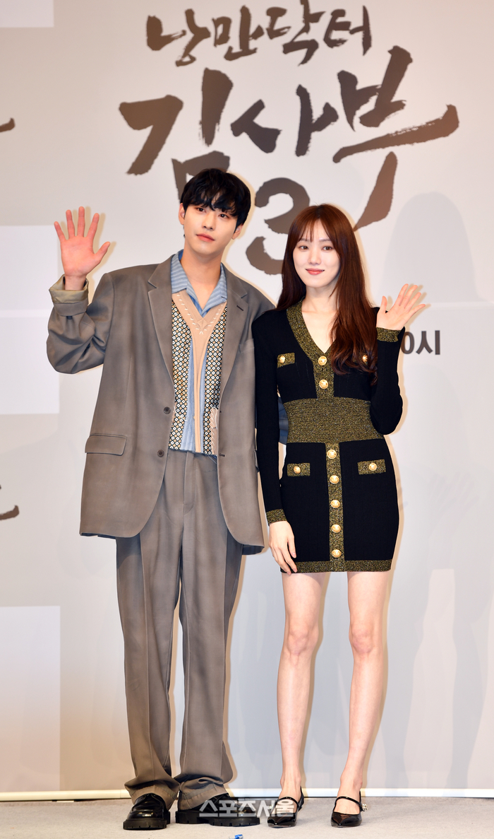 안효섭과 이성경이 26일 목동SBS에서 열린 16부작드라마 ‘낭만닥터 김사부3’ 제작발표회 무대에 올라 포토타임을 갖고 있다.