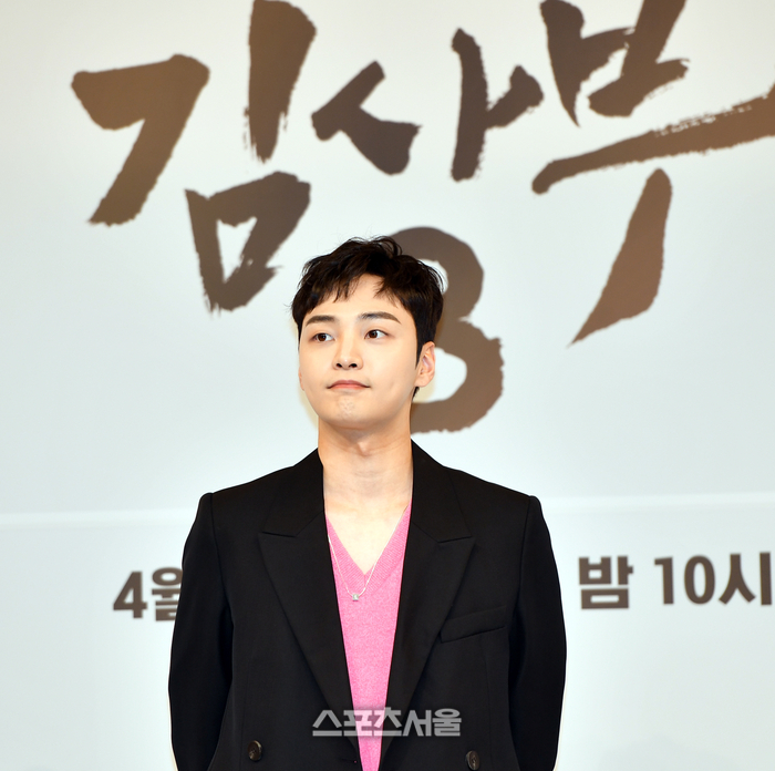 배우 김민재가 26일 목동SBS에서 열린 16부작드라마 ‘낭만닥터 김사부3’ 제작발표회 무대에 올라 포토타임을 갖고 있다.