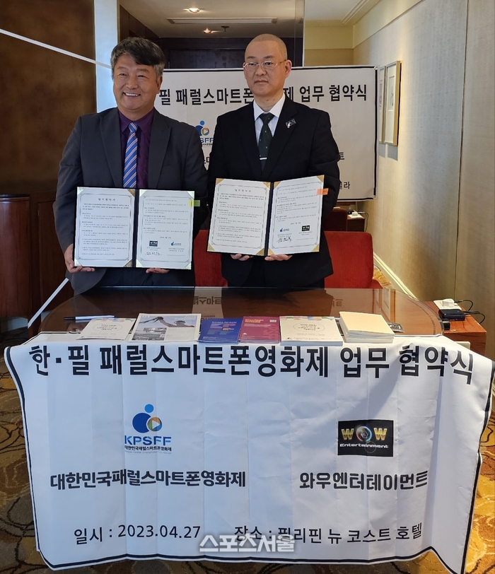 [스포츠서울 | 필리핀 주재기자 방영수] 필리핀 와우엔터테인먼트 장한식회장은 대한민국 패럴스마트폰 영화제 장동욱 사무국장과 함께 ‘한•필 패럴스마트폰 영화제 업무협약’ 을 체결했다.