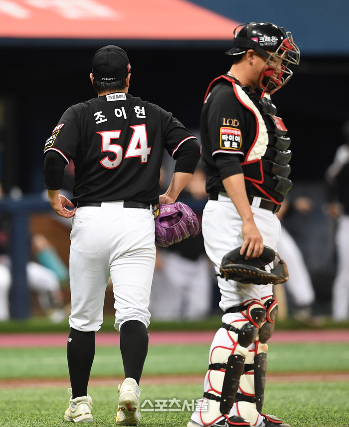 KT 위즈 선발투수 조이현이 27일 고척스카이돔에서 열린 2023 KBO리그 키움 히어로즈와 경기 3회말 1사 1-2루 상황에서 마운드에서 내려가고 있다. 2023. 4. 27.