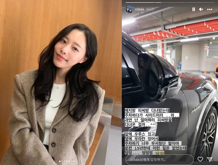 공개된 사진 속에는 이솔이가 주차 중 사고를 낸 모습이 담겨 있다. 사이드 미러가 박살돼 있는 상황이 안타깝게 느껴질 뿐이다.