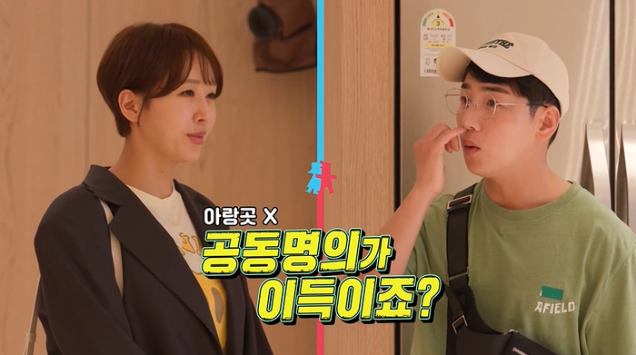 집을 보던 중 박군은 공인중개사에게 “지금 살고 계신 집 명의가 어떻게 되냐”고 물었다. 한영은 “여기서 명의 얘기를 왜 하냐”고 당황했지만 박군은 아랑곳하지 않고 “공동명의가 훨씬 이득이지 않냐. 세금을 낸다 하더라도 대출도 같이 나오고”라며 반박했다.
