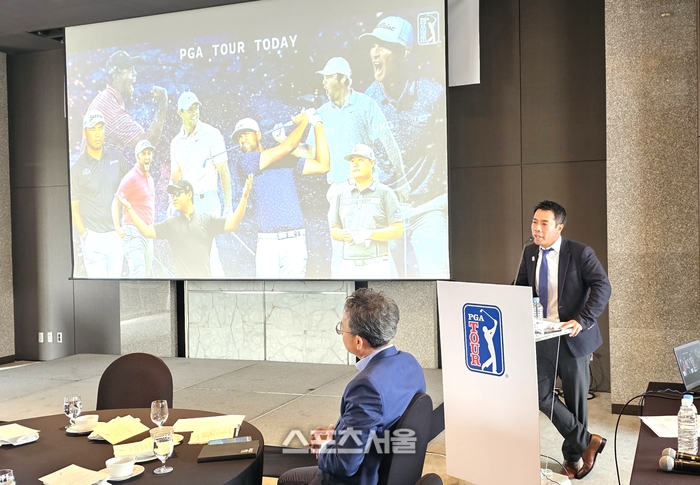 PGA투어 이승호 아시아태평양 대표이사는 2일 서울 소공동에 있는 더프라자호텔에서 미디어 정책 간담회를 개최했다. 이 대표는 “PGA투어에서 한국인 선수가 아홉 명이나 뛰고 있다. 결코 적지 않은 선수들이고, 한국의 골프열기, 한국 골프시장 규모 등을 종합적으로 고려하면, PGA투어의 글로벌화에 빼놓을 수 없는 파트너”라고 강조했다. 그러면서 “KPGA 코리안투어 선수들의 해외진출 기회 확장을 위해 DP월드투어와 긴밀히 협의해 세 장의 시드권을 얻어냈다. 제네시스포인트 랭킹 3위까지 DP월드투어에서 뛸 수 있는 자격을 얻는다”고 말했다.