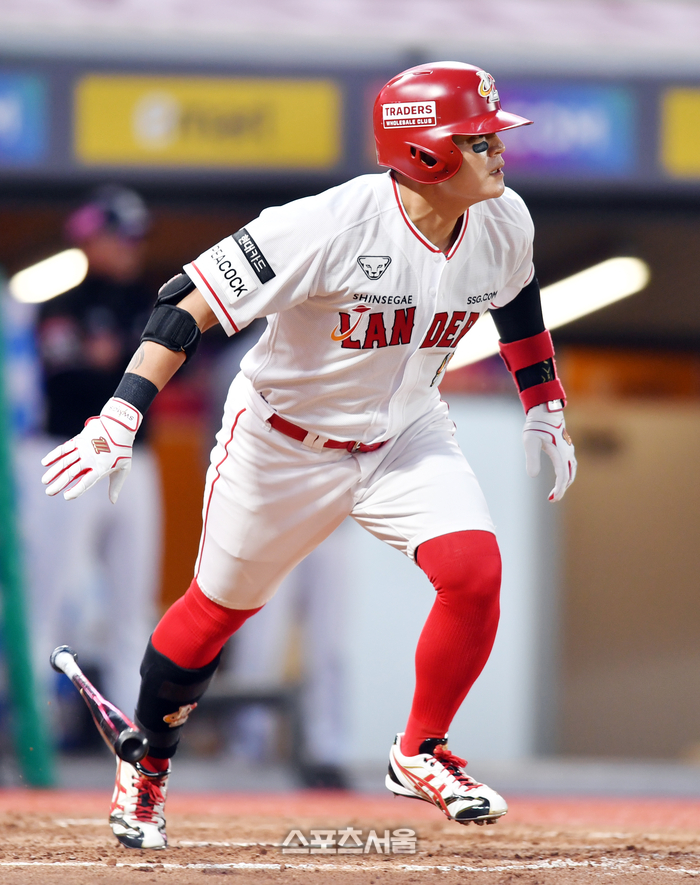 SSG 1번타자 추신수가 2일 인천SSG랜더스필드에서 열린 2023프로야구 SSG랜더스와 KT위즈의 경기 3회말 1사 후 안타로 출루하고 있다. 2023.05.02.